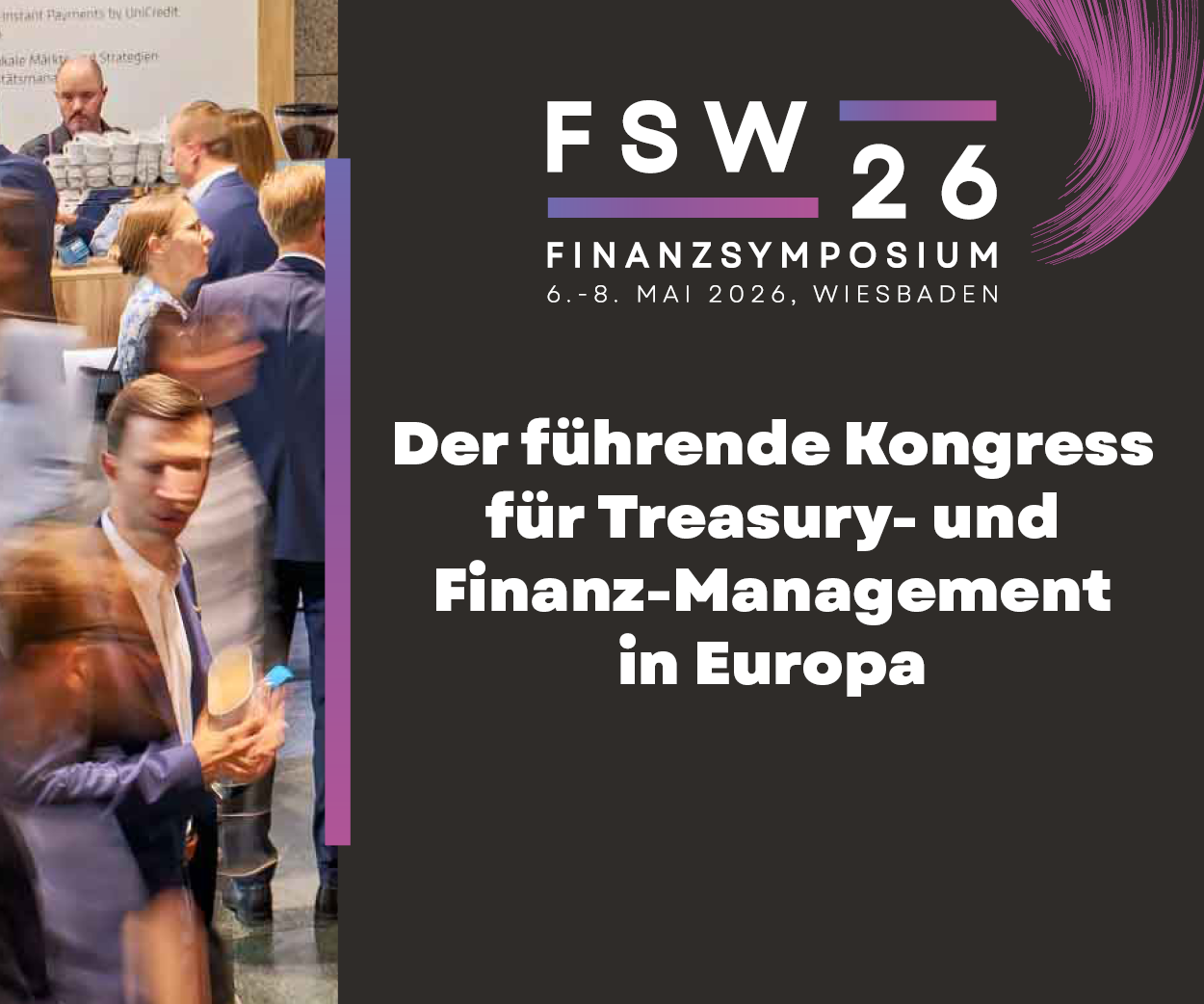 Das Finanzsymposium steht seit 37 Jahren für eine der wichtigsten Plattformen im Treasury- und Finanzbereich. 2026 findet die Veranstaltung erstmals im RheinMain CongressCenter in Wiesbaden statt - ein neuer Standort, der nicht nur mehr Raum, sondern auch neue Möglichkeiten für Formate, Begegnungen und Sichtbarkeit bietet.